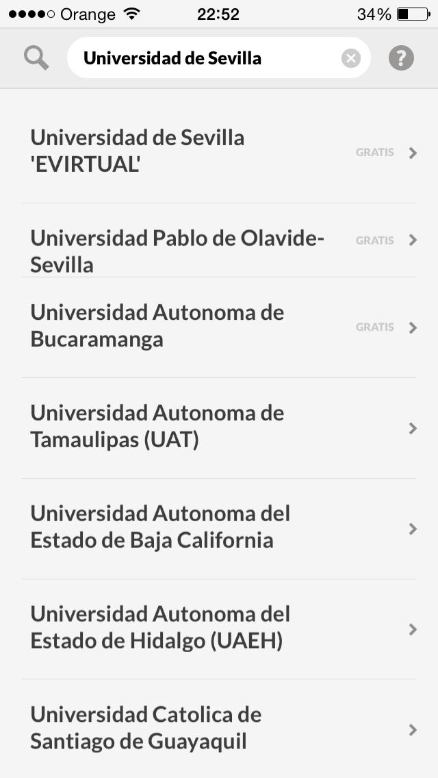 o bien descárgalo desde los enlaces que se encuentran al final de esta página.Una vez instalada la aplicación deberás buscar la Universidad de Sevilla: